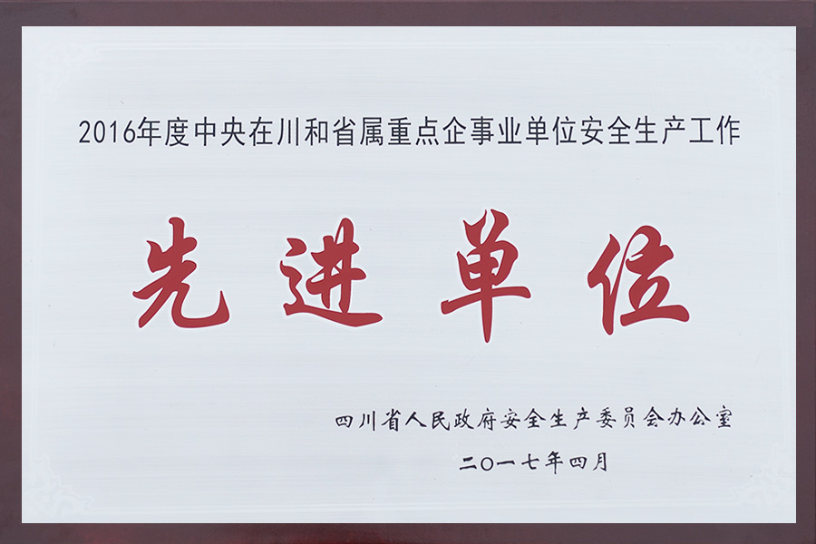 中央在川和省属重点企事业单位安全生产工作先进单位