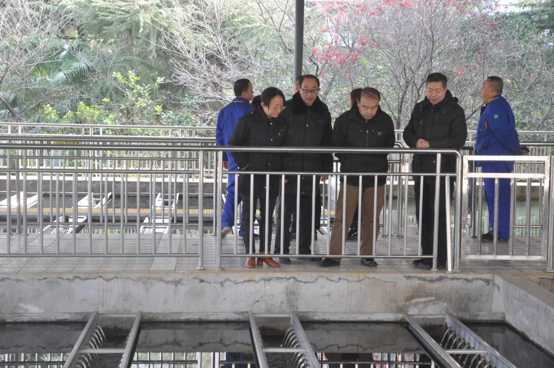 会议结束后,田书记又立即率队前往大英检查工作。待检查组赶到大英水司时已是夜幕降临,田书记一行在大英公司新建的新苗水厂现场查看了夜间制水工艺流程运行状况,听取了大英公司负责人对公司安全生产保障和供水运行情况汇报。