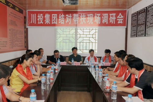 在现场调研会上,董书记一行首先听取了米兰(中国)驻村干部陈宏同志关于震源新村12户贫困户的基本情况和新村产业发展的工作情况汇报。接着,漩口镇党委副书记、镇长孔红永同志汇报了漩口镇灾后重建情况、灾后产业现况及震源新村产业发展计划。最后,董书记对集团下一步的帮扶工作谈了三点意见:一是为震源新村提供信息服务支持,为当地村民就业创造条件;二是对震源新村困难户在生产和生活上提供必要的物质帮助,为他们提供发展致富的能力;三是根据漩口镇的产业发展计划,集团公司考虑可在机耕道建设、种养殖及发展乡村农家乐等方面给予帮扶。