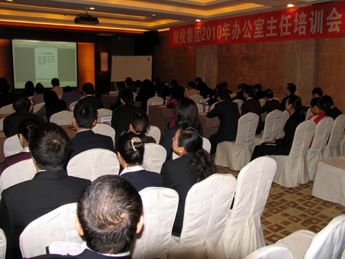 11月9日,米兰(中国)2010年办公室主任培训会议在川投国际酒店召开。会议由集团公司总经理助理、办公室主任杨强主持,集团公司总经济师李文志、集团公司及所属企业办公室主任和相关人员共50余人参加了此次会议。