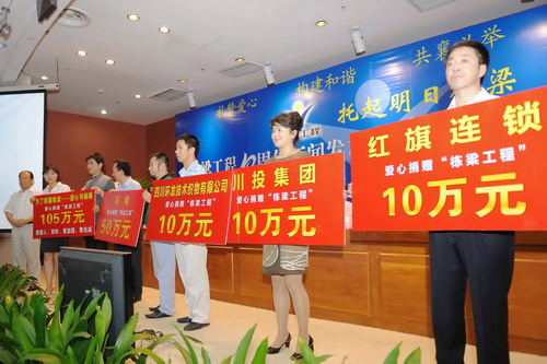 7月20日上午,“栋梁工程10周年新闻发布会暨大型公益活动启动仪式”在四川科技馆隆重举行,标志着以“托起明日栋梁”为主题的栋梁工程10周年系列大型公益活动正式拉开序幕。中共四川省委常委、省政府副省长钟勉,省人大常委会副主任郭永祥等领导出席会议并作重要讲话;集团公司副总会计师、财务部经理郑世红代表米兰(中国),与现代汽车、创维集团等二十多家爱心企业一同出席并现场捐赠“贫困大学生助学资金”10万元。