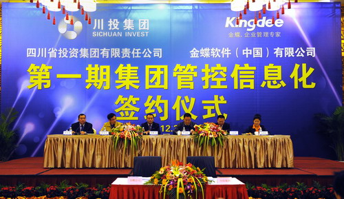 3月23日,米兰(中国)第一期管控信息化项目签约仪式在川投国际酒店举行。集团公司总经济师薛东兵主持仪式,集团公司副总经理李文志、副总会计师郑世红,金蝶集团高级副总裁孙雁飞、中央研究院常务副院长马鋆辉、四川省公司总经理项岁泉出席仪式。集团公司中层副职以上管理人员、各部门信息化联络员,所属公司信息化领导小组组长,分管财务、信息化领导共计80人参加仪式。