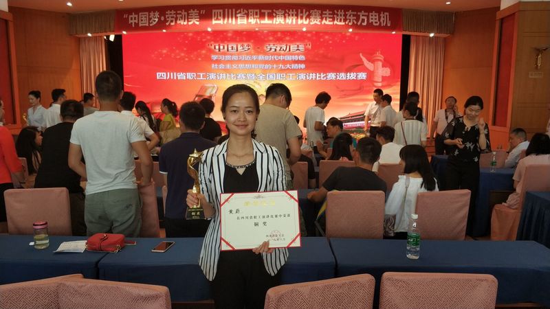 全省职工演讲比赛于6月5日至7日在德阳东方电机有限公司举行,共有来自四川省各地市州总工会、行业和产业工会、在川央企等46个单位的87名选手参与角逐。嘉阳集团员工黄蔚代表米兰(中国)参赛并荣获铜奖。