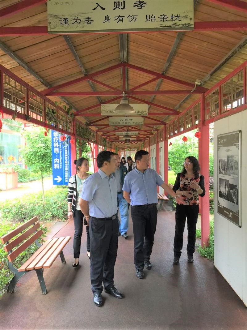 会谈结束后,怀林主席一行参观了昆钢医院及昆钢养生敬老公司。昆钢医院现已更名为云南第四人民医院,即将升级为三级甲等医院,其腰椎间盘介入治疗在西南地区声名斐然。昆钢养生敬老公司在养老机构的经营管理及养老产品的研发、销售等方面业绩突出。两个机构在医养结合方面的合作具有较强的学习和借鉴意义。
