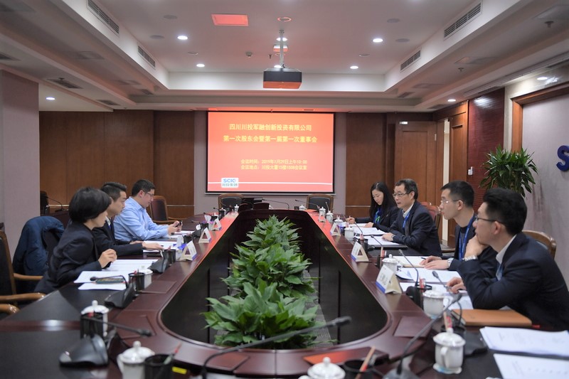 1月30日上午,川投军融创投公司在川投大厦1508会议室召开第一次股东会暨第一届第一次董事会。集团公司总经理助理兼战略投资部部长田传平、审计部副部长王毅、资金财务部李涛、法律事务部王东杰、交大光芒董事长梁涛、成都鸿瑞军智科技董事长余黎出席会议。