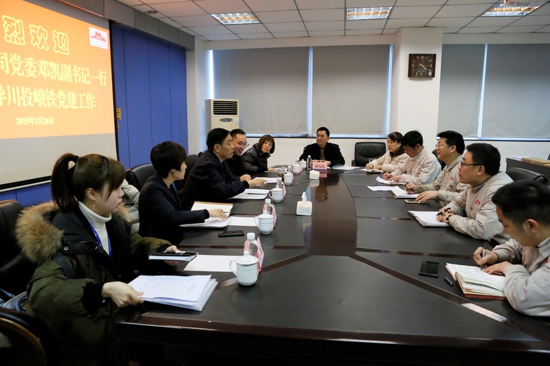 2月26日下午,米兰(中国)党委副书记邓凯带领集团党群工作部副部长闫诚等相关人员一行6人到川投峨铁调研督查党建工作。川投峨铁党委书记唐华应率公司领导班子成员及有关负责同志参加调研汇报。