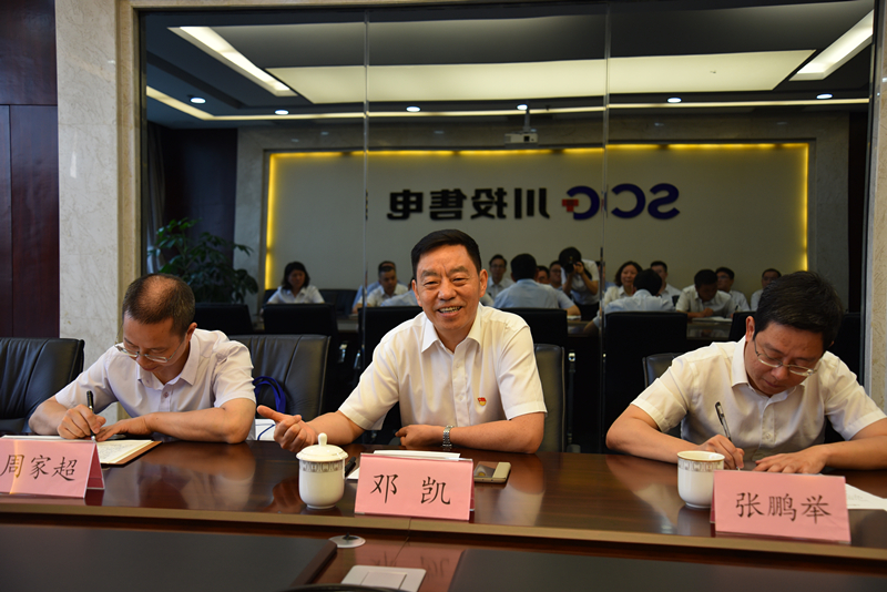 集团公司党委副书记邓凯出席会议并讲话,他对川投售电公司和周家超同志提出要求和希望:一是希望周家超同志尽快熟悉情况、熟悉业务,积极担当履职。二是希望川投售电公司生活上关心,工作上帮助,全力支持周家超同志工作。三是面对严峻的内外部形势,尤其是在主业受限的情况下,川投售电公司要创新思路谋求转型发展,积极追求新的发展空间,探索“曲线救国”做强做大。四要开源和节流并重抓好经营管理,要多措并举促增收,严控成本抓节支。五要抓实抓好党建工作,确保党建和经营同力同向,不断将党建效能转化为公司经营发展力量。