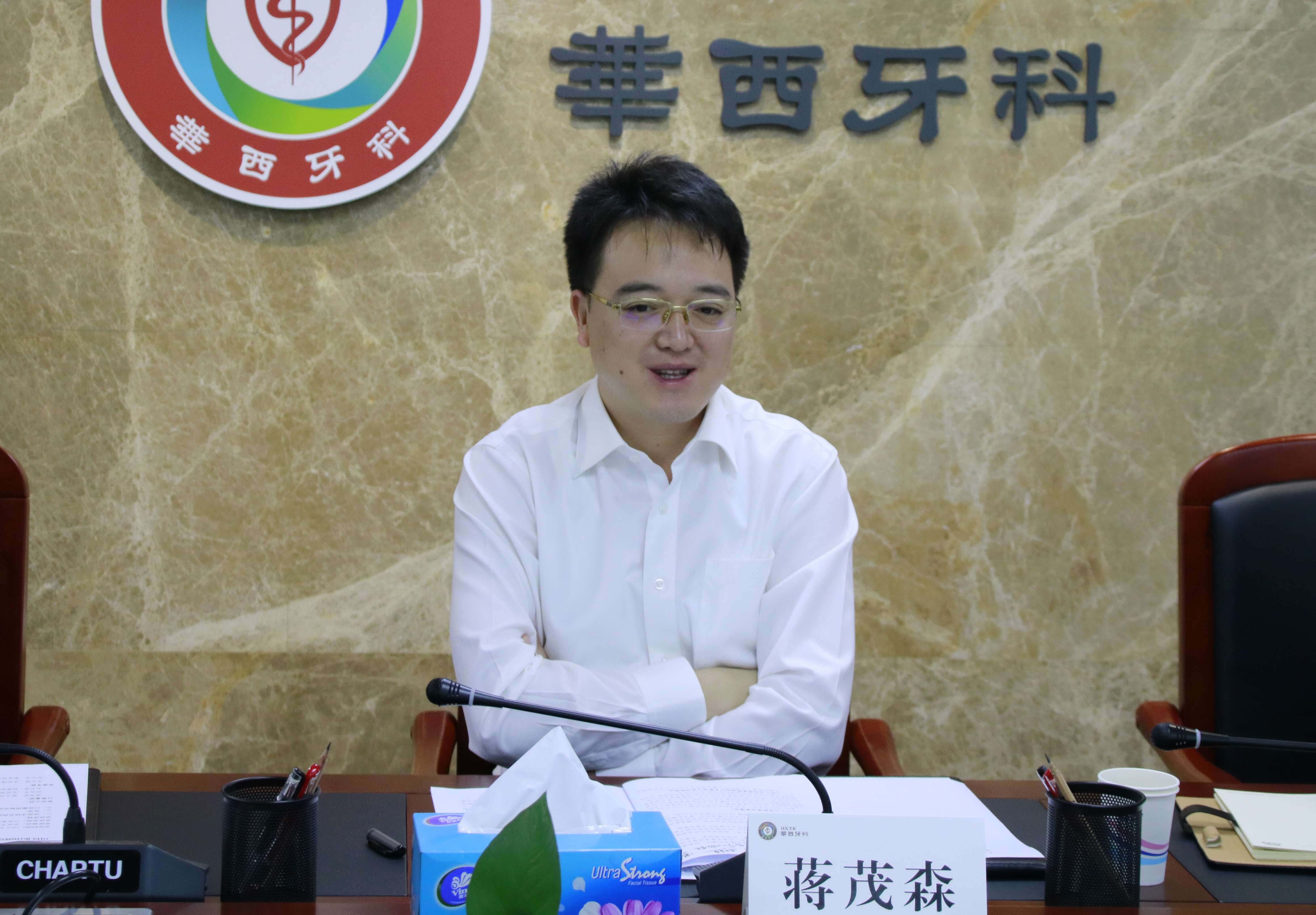 随后,在华西牙科召开了座谈会。会上,关志强总经理首先感谢蒋总一行对华西牙科的关心和重视,随后从公司基本情况、经营发展状况、口腔行业现状、与集团兄弟单位协同情况、发展的优势及不足、下一步打算、恳请支持事项等七个方面汇报了华西牙科的发展情况。