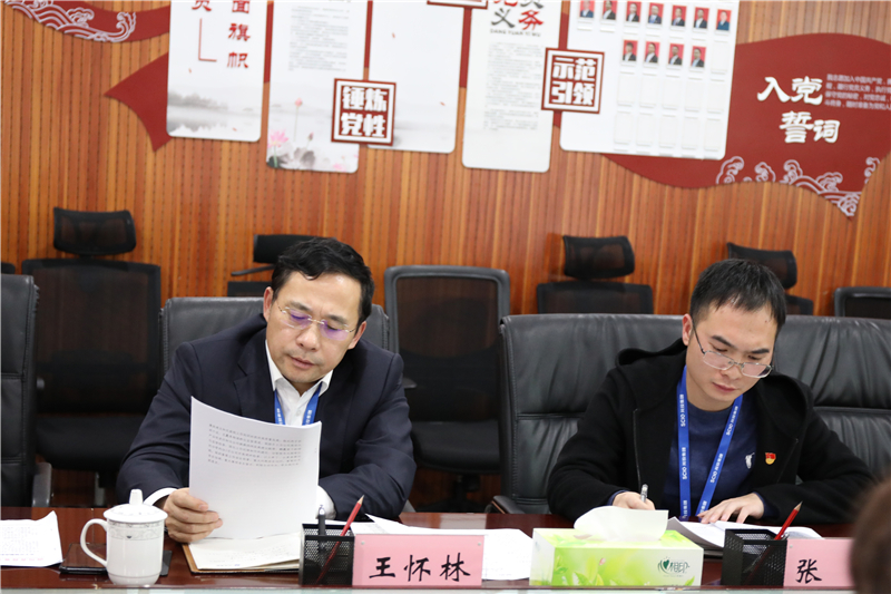 11月27日下午,集团公司副总经理王怀林率党群部张明一行,到房地产公司督导“不忘初心 牢记使命”主题教育整改落实“回头看”工作。房地产公司董事长、支部书记高红梅主持会议,总经理、支部副书记张碧波,副总经理、宣传委员王东杰,财务总监、纪检委员李易亮,总工程师邓吉清及七名党员代表参加了会议。