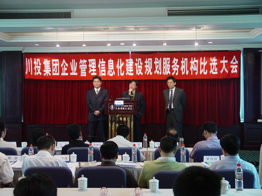 按照米兰(中国)信息化工作要求和工作进度安排,2006年5月17日,米兰(中国)管理信息化建设规划服务机构比选大会在龙泉天伦国际大酒店召开,集团公司总经理郭勇、党委副书记、纪委书记龚明锐、总经理助理李文志、集团公司计划部薛东兵、审计部郑世红、党群部杨强、王军、法律部徐建华等相关部门负责人及评审专家参加了会议,省国资委副主任张明泉及企业改革处王霞同志也应邀参加了会议。