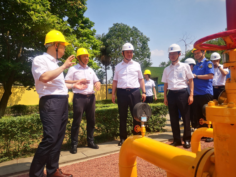 黄劲一行还前往宏源气司气井、储配站、CNG加油加气站、液化气充装站等地视察调研、检查安全工作,并前往客户服务中心了解了宏源气司打造一站式服务、信息化建设等情况。在井场和储配站,黄劲一行了解了场站设备设施、工艺流程和安全运行等情况,并重点察看了安全生产清单制资料台账和燃气SCADA系统;在CNG加油加气站和液化气充装站,黄劲一行察看了加油加气流程、储气罐、压缩机房和液化气储罐区安全运行情况,了解当前成品油和压缩气的价格、行情、油和气各自优势等经营细节。黄劲对宏源气司“安全专家会诊”等措施给予了充分认可,要求宏源气司继续把安全供气放在首位,以优质高效服务做好民生保障,针对当前夏季高温暴雨天气情况,要认真吸取温岭槽罐车爆炸事故教训,加强重要区域、关键环节的安全管理,加强隐患排查治理,要坚持“以人为本,安全第一”的原则,提前做好抢险撤避应急预案,提高应急处置能力,持续保持安全平稳发展态势。