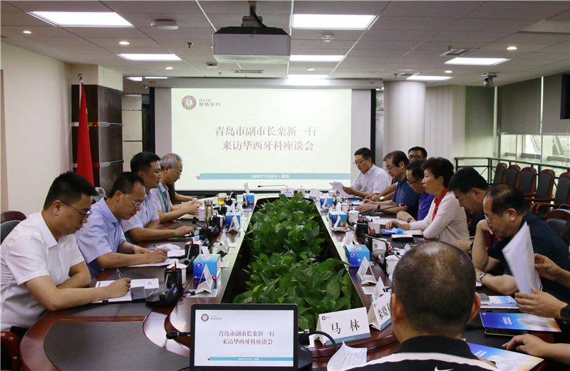青岛市卫生健康委员会党组书记、主任隋振华,青岛大学附属医院党委书记王新生,青岛市市立医院院长管军,青岛市中心医院院长兰克涛;华西牙科副总经理罗云教授及相关人员参加会谈。