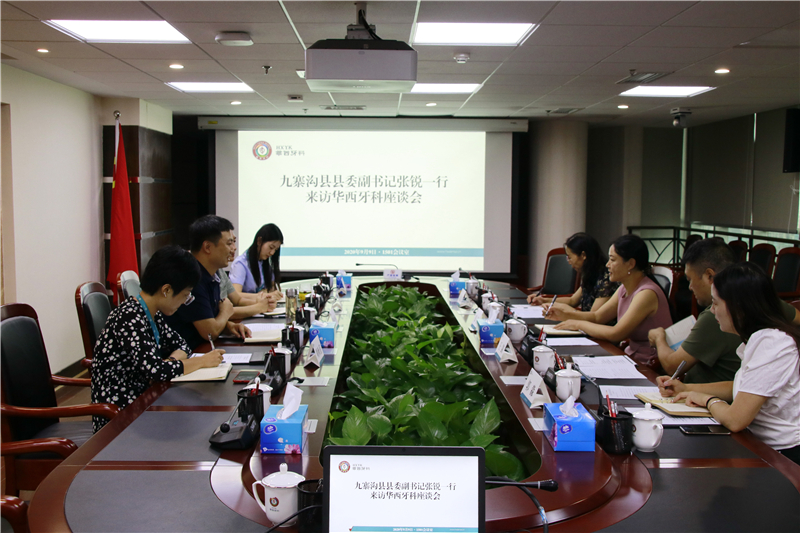 九寨沟县商务和经济合作局、卫健局、卫健局大健康服务中心,华西牙科相关负责人参加座谈。