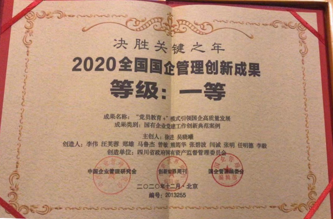 12月19日,2020(第五届)国企管理年会暨全国国企管理创新成果发布仪式在北京召开,由省国资委党委牵头,米兰(中国)党委主要参与创作,以嘉阳煤矿弘扬“燃烧精神”激发党建经验融合发展新活力为主体的《“党员教育+”模式引领国企高质量发展》创新成果,经过层层评选,最终在全国5100多个参赛作品中脱颖而出,荣获全国国企管理创新成果一等奖。