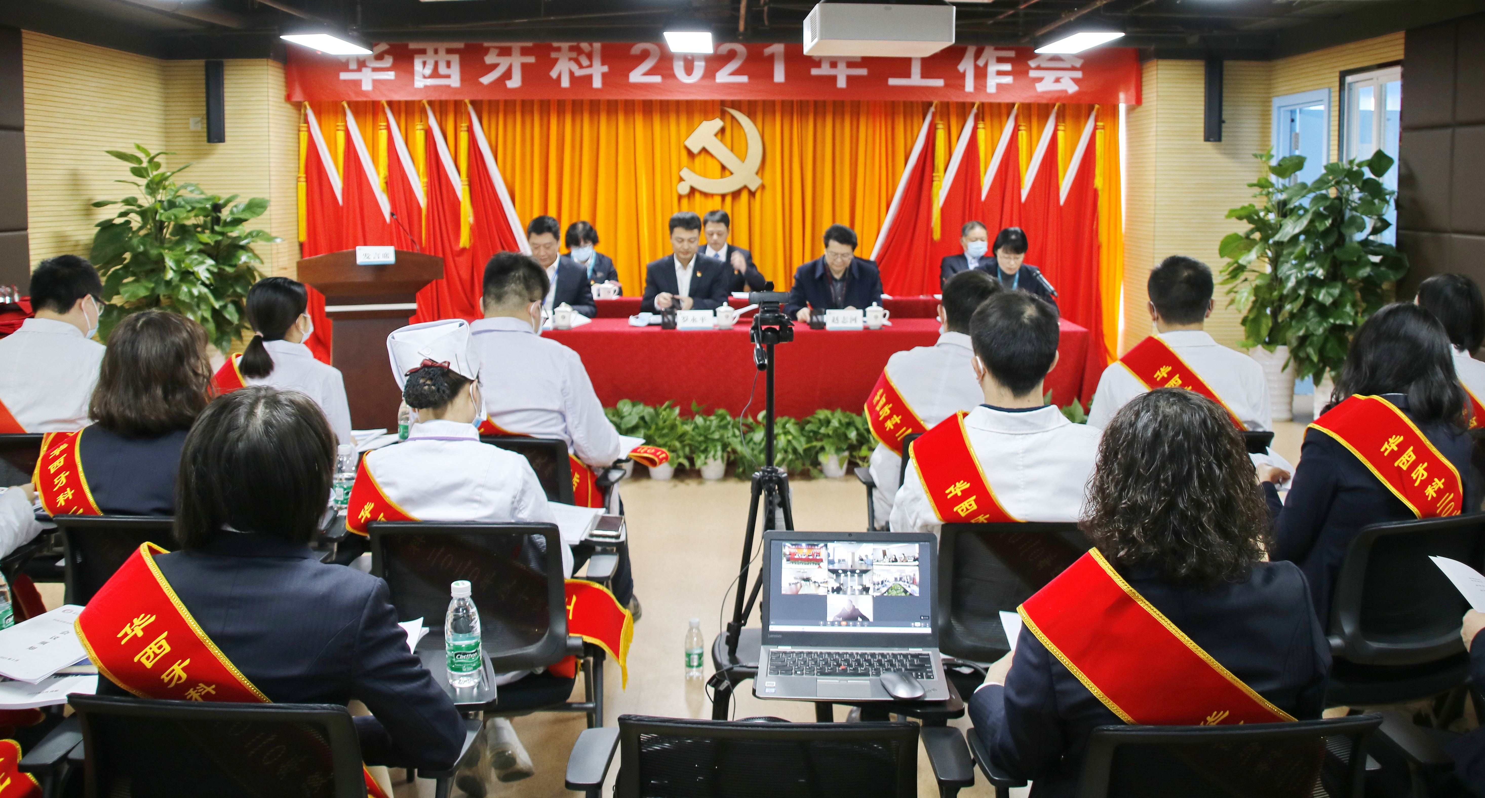 2月8日,华西牙科公司2021年工作会在四川口腔医院会议室召开。集团公司党委委员、副总经理,华西牙科党委书记、董事长罗永平,集团公司财务总监、华西牙科董事黄劲,四川大学华西口腔医(学)院副院长、华西牙科董事赵志河教授等出席会议。华西牙科公司党委副书记、纪委书记、职工董事金晶主持会议。