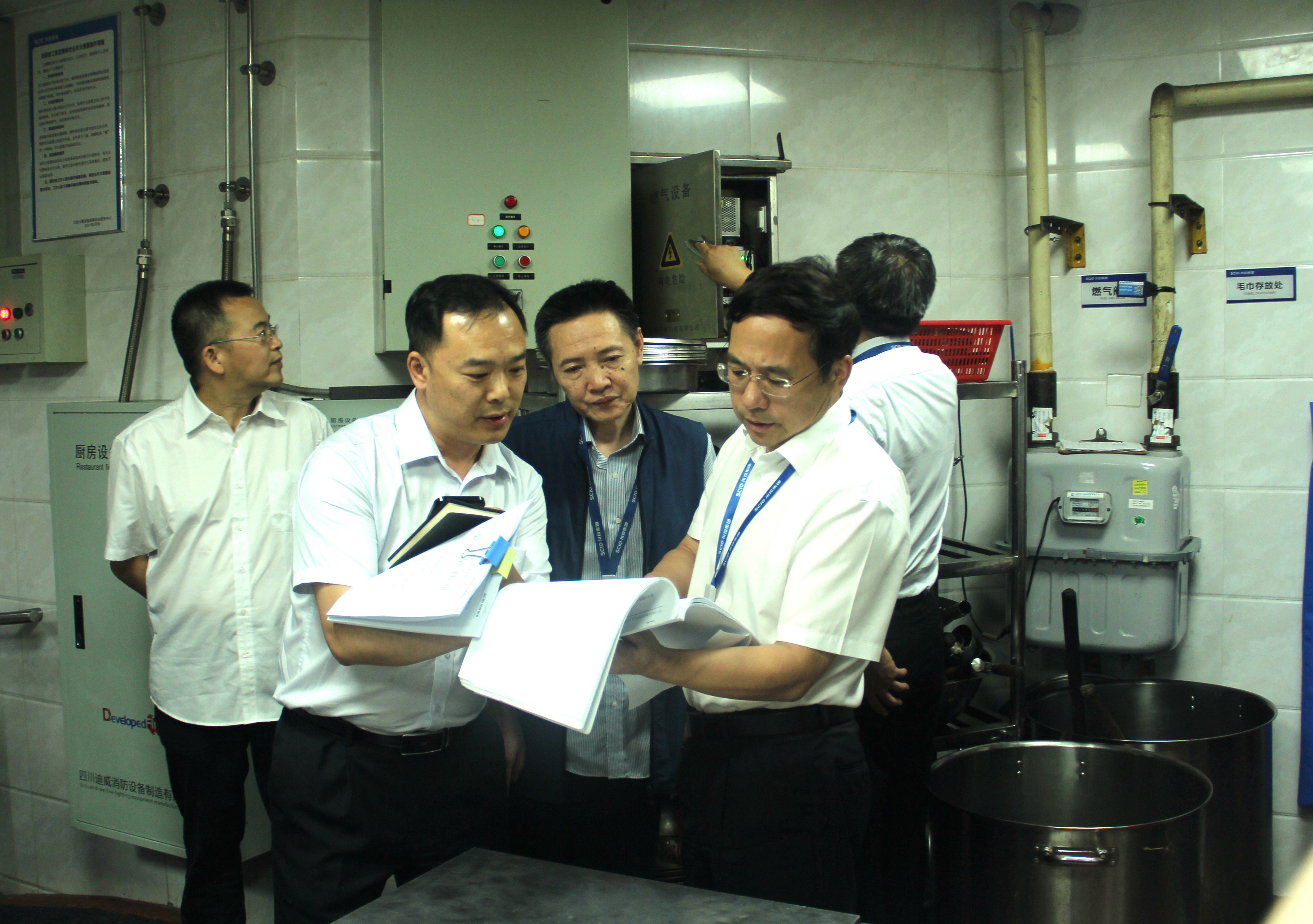 王怀林一行实地查看了川投大厦、南府街项目食堂、电梯机房,消防水泵房、配电室等安全管理重点部位,查阅了川投佳友物业公司安全生产与应急管理资料,了解了项目现场特种设备的管理流程、防汛准备、燃气安全、疫情防控等工作情况。