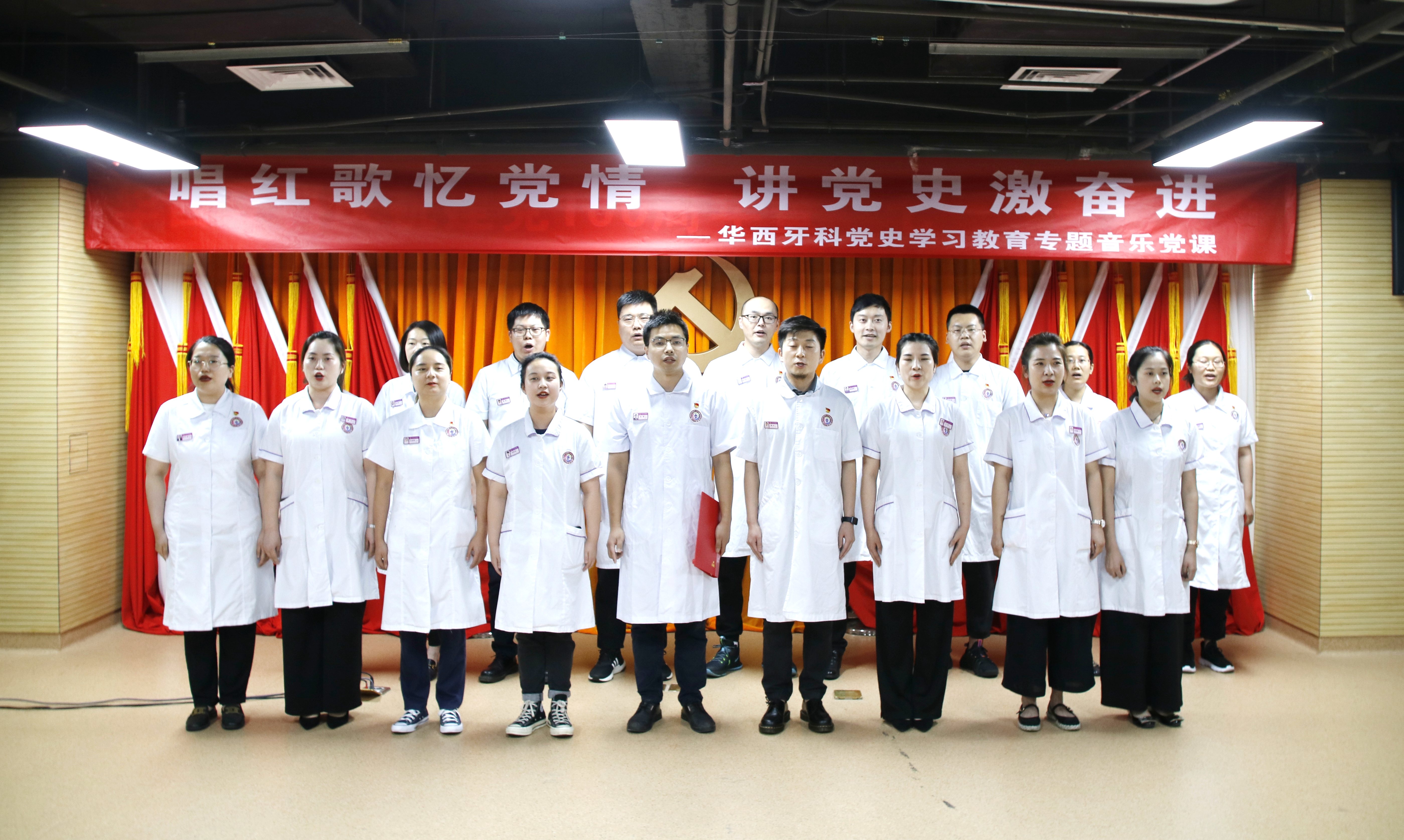 在“唱红歌忆党情 讲党史激奋进”党史学习教育专题音乐党课中,华西牙科各级党组织以党史学习为主线、以红色歌曲为载体,通过“讲述历史+歌曲演唱”的方式,再现和回顾了中国共产党走过的光辉历程和激昂岁月。