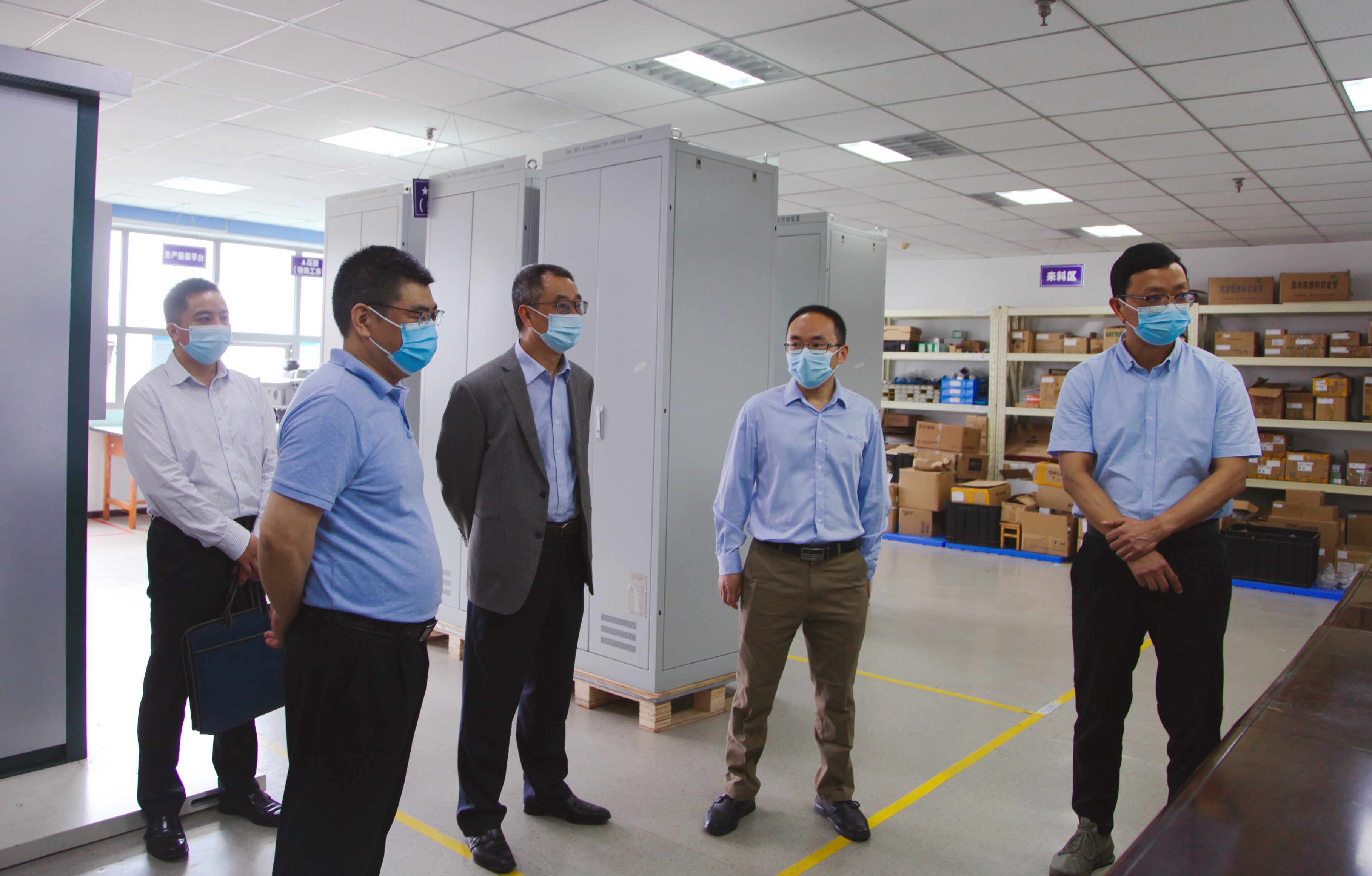 肖代勇一行参观了交大光芒生产基地,考察了产品调试车间、装置调试车间、模板调试车间,听取了交大光芒公司产品生产、调试、装置整机装配的过程以及产品在轨道交通行业的应用等情况介绍。