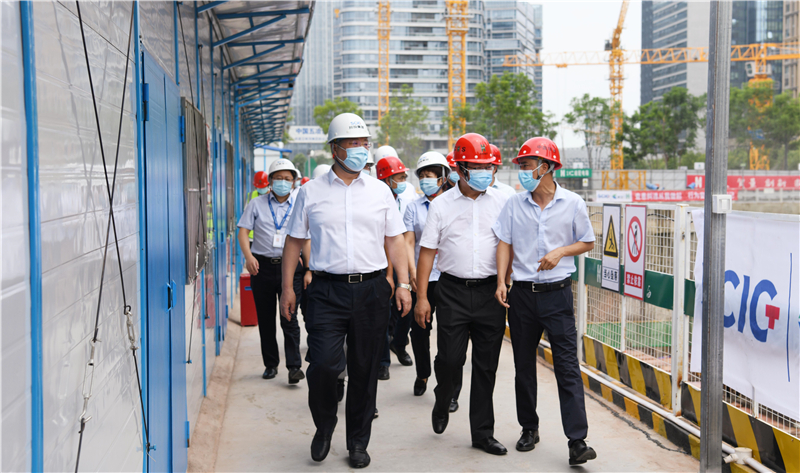 李文志一行深入施工作业现场,详细了解项目建设进展,认真听取项目近期疫情防控、施工安全、防汛应急等有关工作的汇报,亲切看望慰问一线作业人员,对大家战高温、斗酷暑、保进度的辛勤付出表示感谢,并叮嘱大家强化安全意识,做好防暑降温措施,注意劳逸结合。