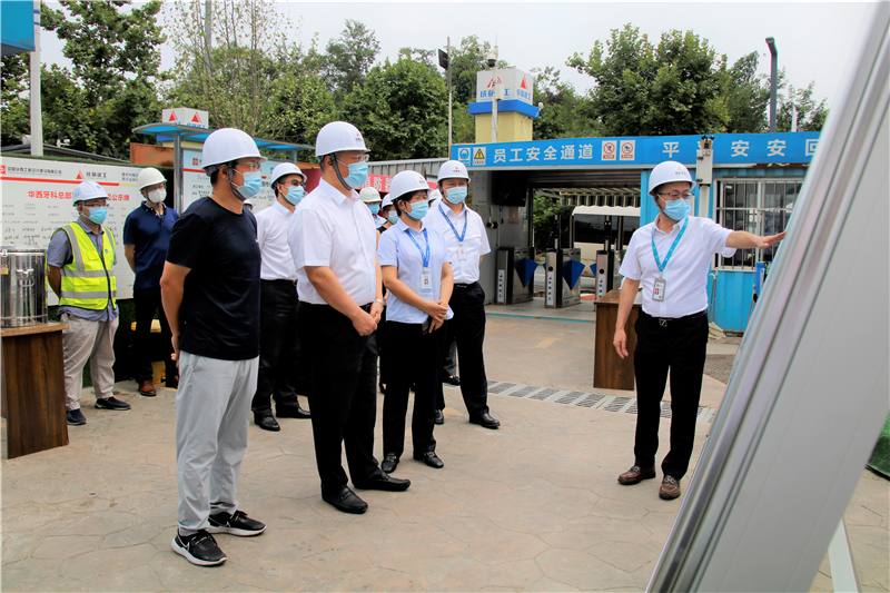李文志一行深入华西牙科总部项目施工工地,现场督导检查项目安全生产、防汛减灾、疫情防控和信访稳定工作,听取了华西牙科关于落实防疫防汛、安全生产及当前重点工作推进情况的汇报。