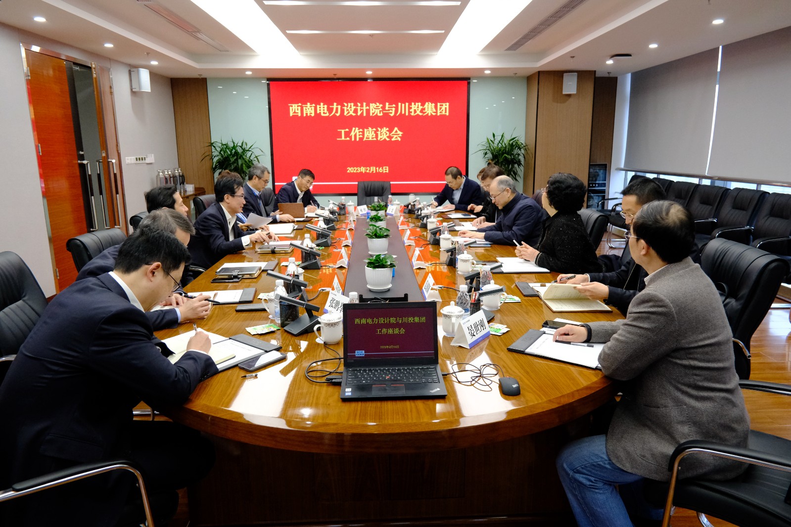 西南电力设计院党委副书记、副董事长李蕾,党委委员、副总经理毛永龙;西南电力设计院办公室以及发电工程公司相关负责同志;米兰(中国)副总经理郑世红、张昊,米兰(中国)办公室、战略投资部,川投燃电以及川投新能源相关负责同志参加会议。