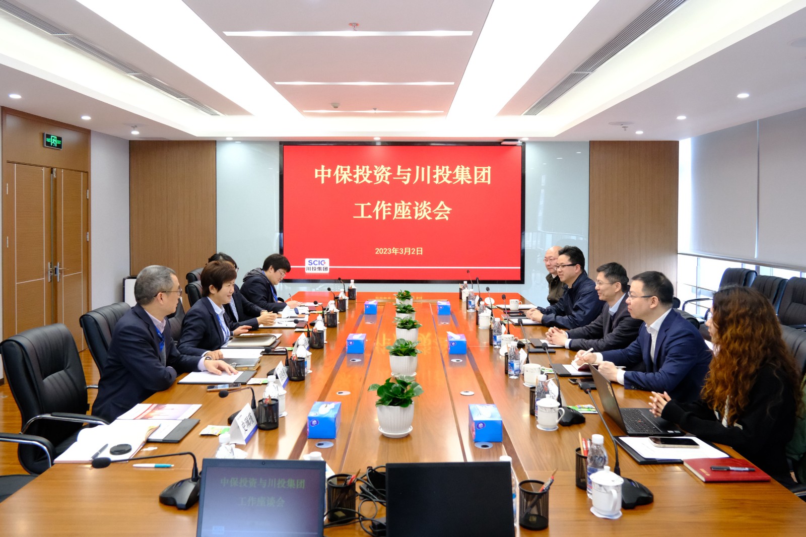 集团公司总经理助理、战略投资部部长田传平,总经理助理、资本运营部部长龚圆,川投资本总经理王静轶;中保投资投资团队游虎,办公室总监潘哲;与会双方其他相关同志参加座谈。
