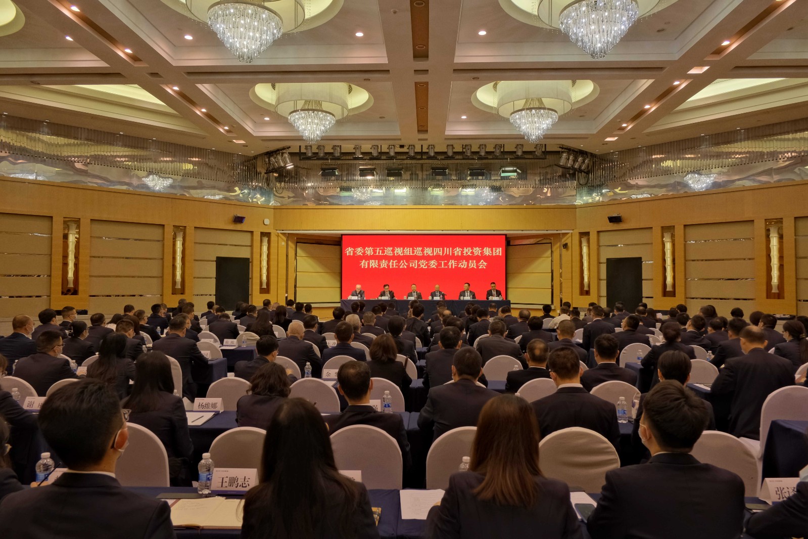 省委第五巡视组副组长唐明华、肖巍,省委第五巡视组、省委巡视办相关同志;集团领导班子全体成员,本部中层副职以上管理人员;所属二级公司(含重要三级公司)主要负责同志、党委专职副书记、纪委书记;部分离退休党员干部和基层员工代表参加会议。