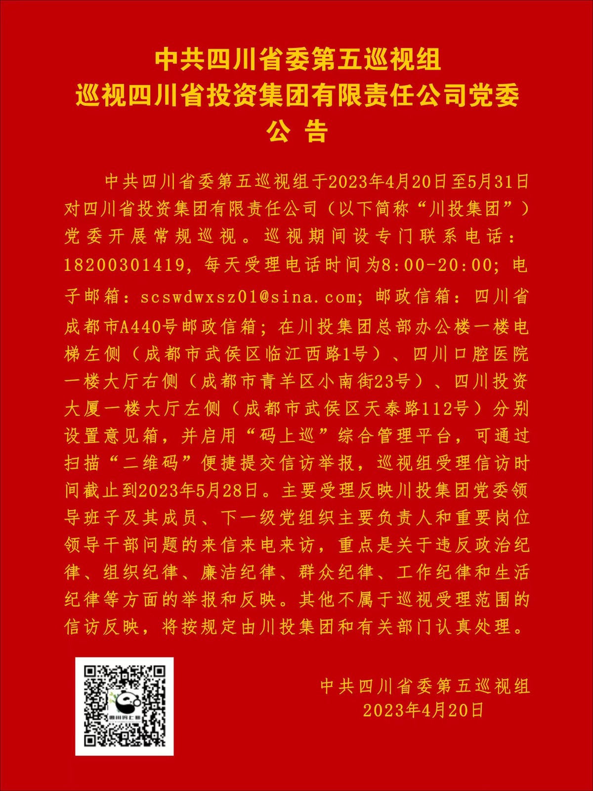 吴晓曦代表集团党委作表态发言。他表示,此次巡视是集团政治生活中的一件大事,全体党员干部职工一定全力配合,确保巡视工作有力有序有效开展。一是自觉提高政治站位,坚决贯彻落实省委巡视工作要求。坚持从增强“四个意识”、坚定“四个自信”、做到“两个维护”的高度,去认识和把握此次巡视的重要意义。把本轮巡视作为找差距、转作风、树形象的重要契机,严肃对待坚决服从;作为提质增效、加快发展的良好机遇,对标一流补齐短板,全力以赴拼经济、搞建设,不断推动高质量发展。二是自觉全力支持配合,坚决做好巡视工作各项保障。集团上下一定精心组织、坦诚以待,严格按照时间节点提供资料、办理回复,服从服务好巡视组的各项工作安排。三是自觉严明纪律规矩,坚决做到主动接受巡视监督。始终把纪律规矩挺在前面,诚恳接受监督检查,对查摆的问题“不遮掩、不回避、不护短”,以实际行动支持巡视工作。四是自觉坚持问题导向,坚决抓好巡视发现问题整改。对已发现的问题不等不靠,坚持即知即改、立行立改、边巡边改;坚持建章立制,突出加强党风廉政和反腐败工作的长效机制建设,秉持“面对问题不回避、认清形势不懈怠、盯紧目标不放松”的原则,真正使接受巡视监督的过程成为发现问题、整治整顿、提振信心、树立形象的过程,推动企业不断做强做优做大,奋力写好中国式现代化四川篇章的川投答卷。