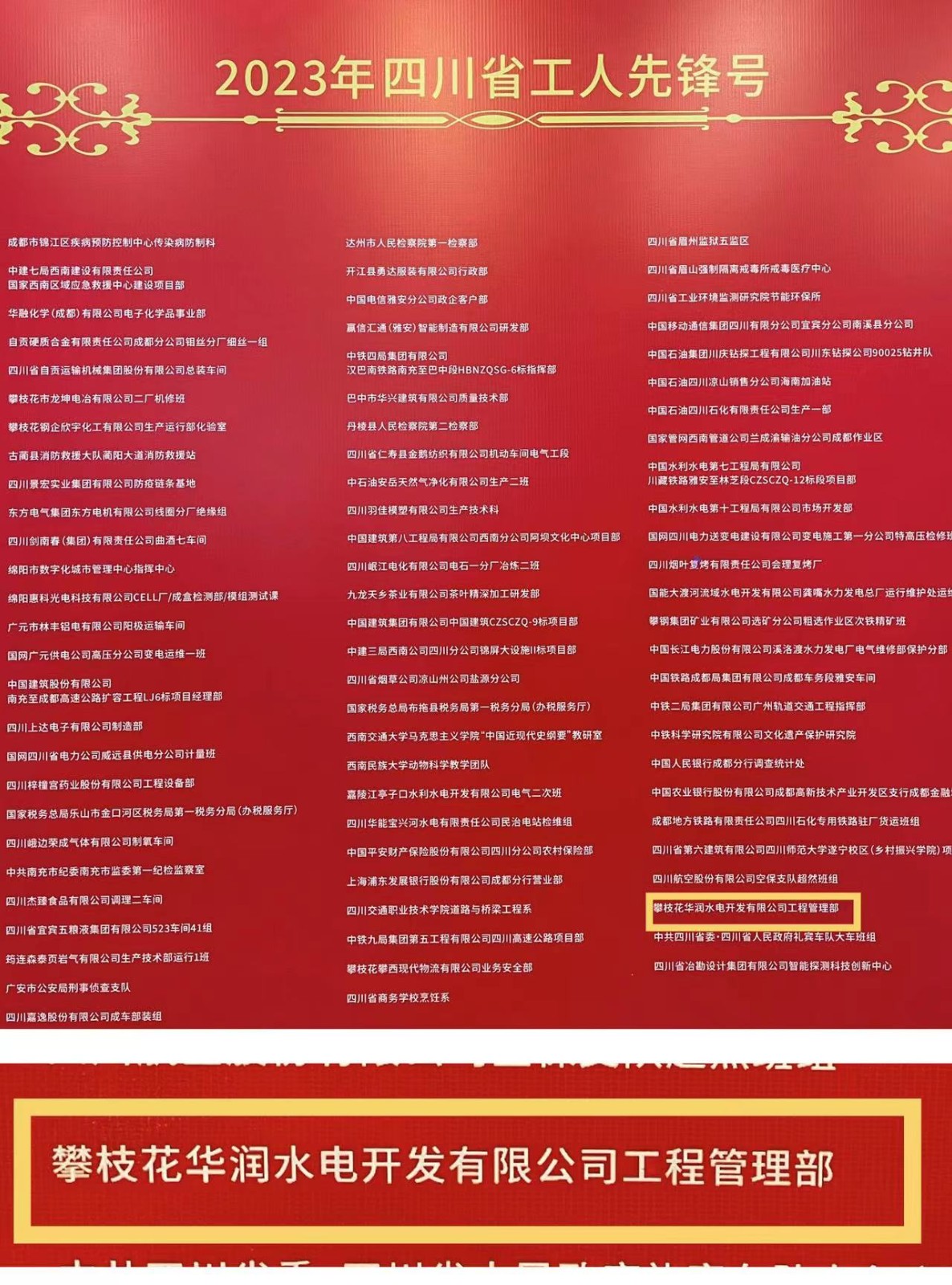 4月25日上午,2023年四川省庆祝“五一”国际劳动节暨表彰大会在成都举行。米兰(中国)所属川投能源的攀枝花华润水电开发有限公司(简称“川投能源攀水电公司”)工程管理部被授予“四川省工人先锋号”荣誉称号。