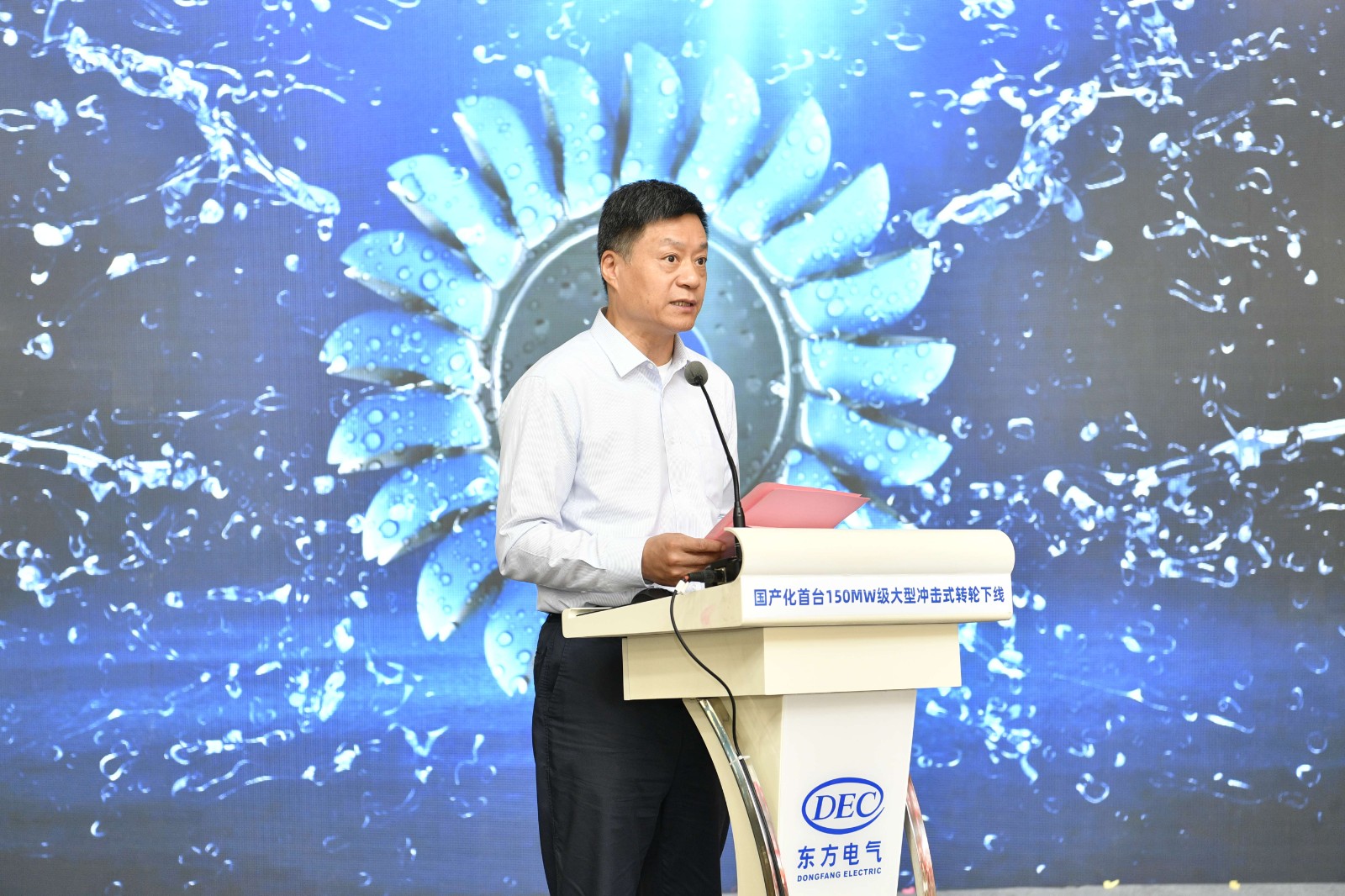 东方电气集团党组书记、董事长俞培根代表东方电气集团向出席活动的领导专家表示热烈欢迎,向参与150兆瓦级冲击式转轮国产化研制的全体人员表示热烈祝贺,向项目重要合作方(米兰(中国))表示衷心感谢。他表示,本次完工下线的国产化首台150兆瓦级冲击式转轮是东方电气集团深入践行国家“双碳”战略、瞄准国内空白和世界一流开展关键核心技术攻关、推动我国能源装备自立自强的具体实践。