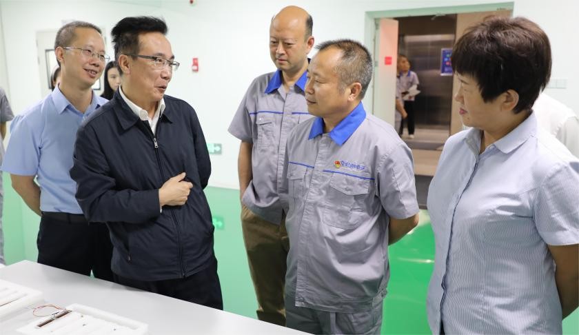 吴晓曦一行深入宏明电子生产车间,实地检查了高可靠性电子元器件技术改造及建设项目安全生产情况。