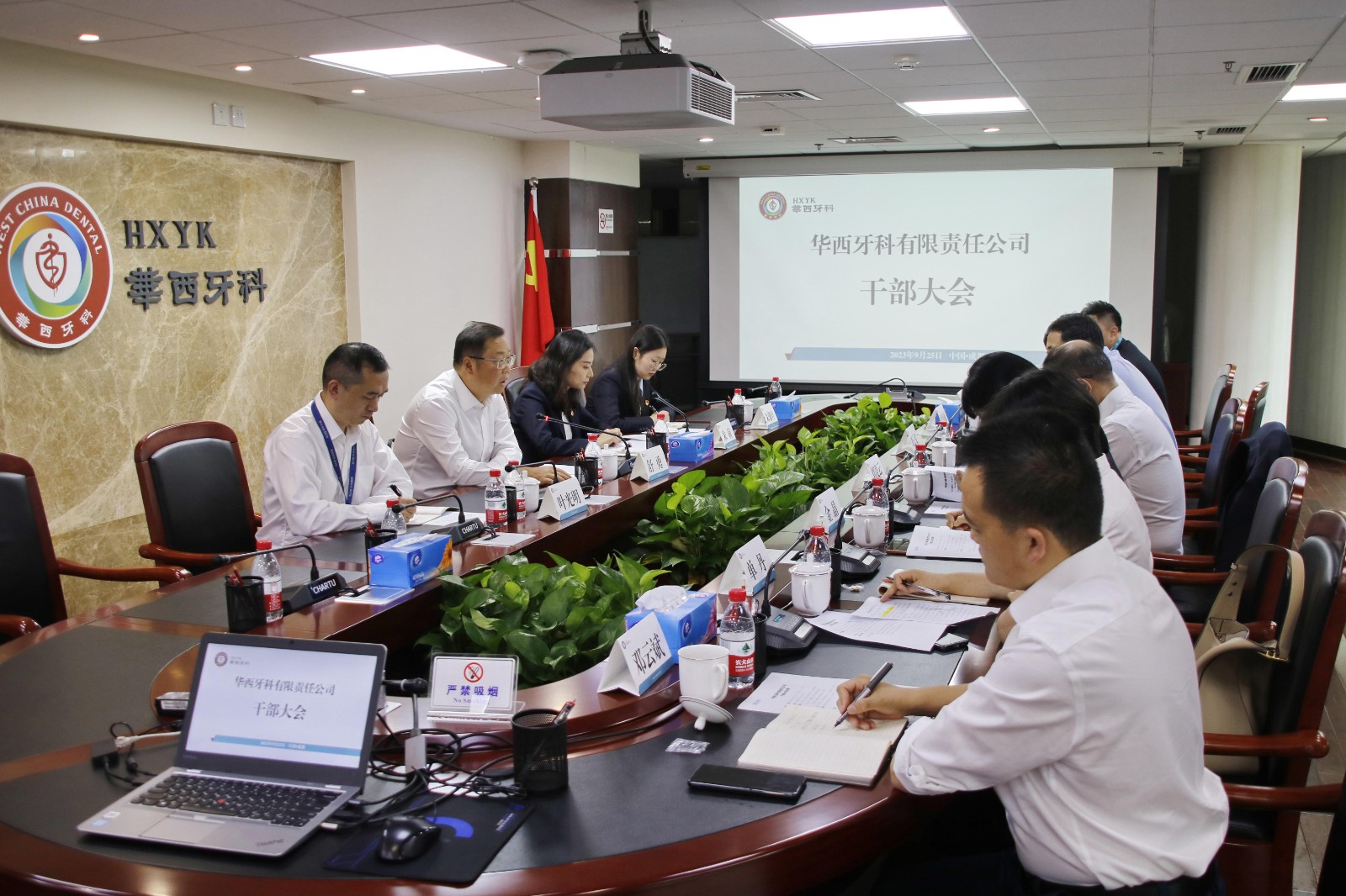 9月25日,华西牙科召开干部大会。集团公司党委委员、副总经理舒勇出席会议。华西牙科党委书记、董事长、总经理刘凌云主持会议。