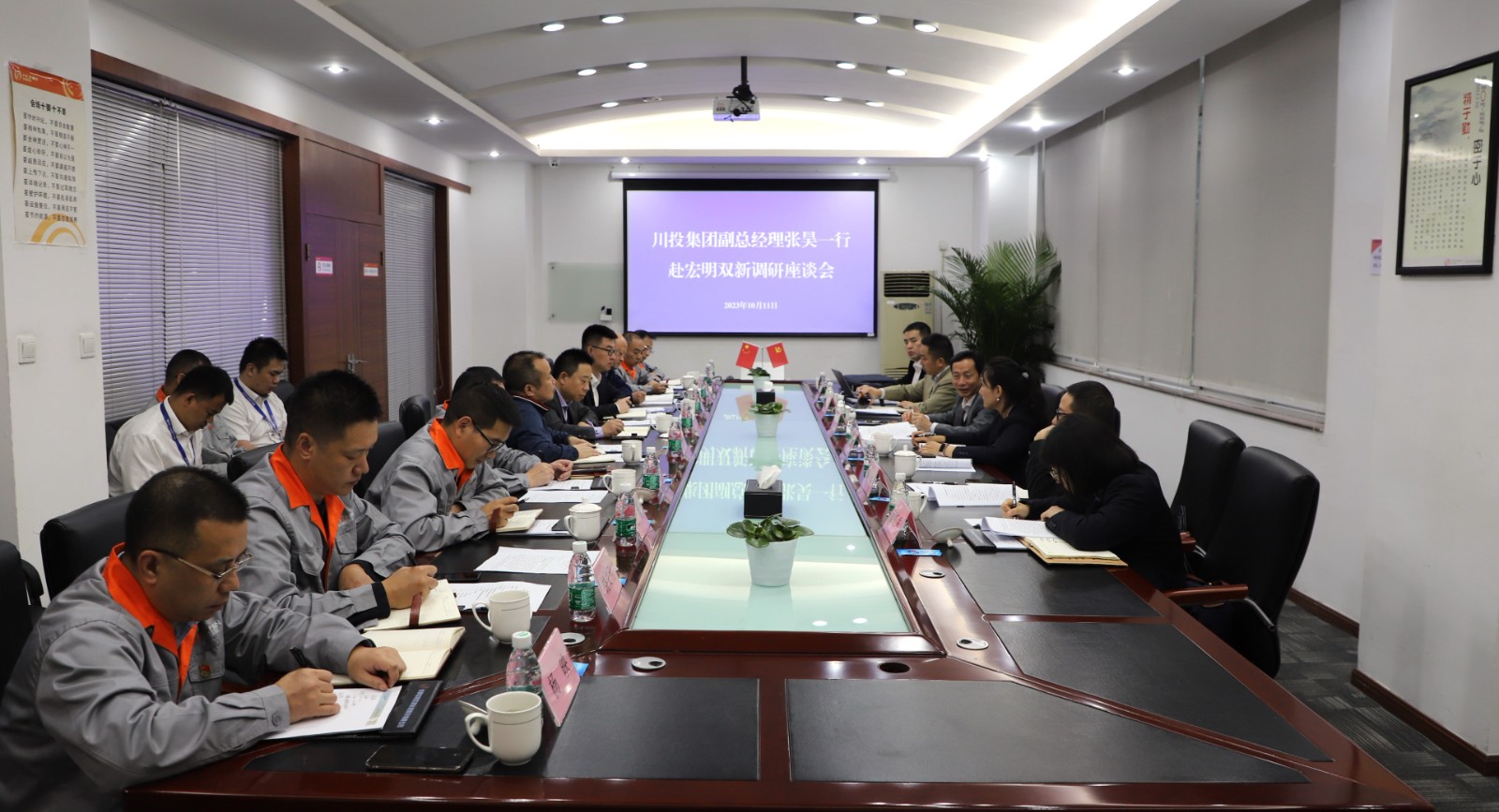 10月11日,集团公司副总经理张昊率队赴宏明双新调研企业前三季度经济运行情况,并对川投信产开展亏损治理、价值创造行动工作进展及完成全年目标任务进行督导。