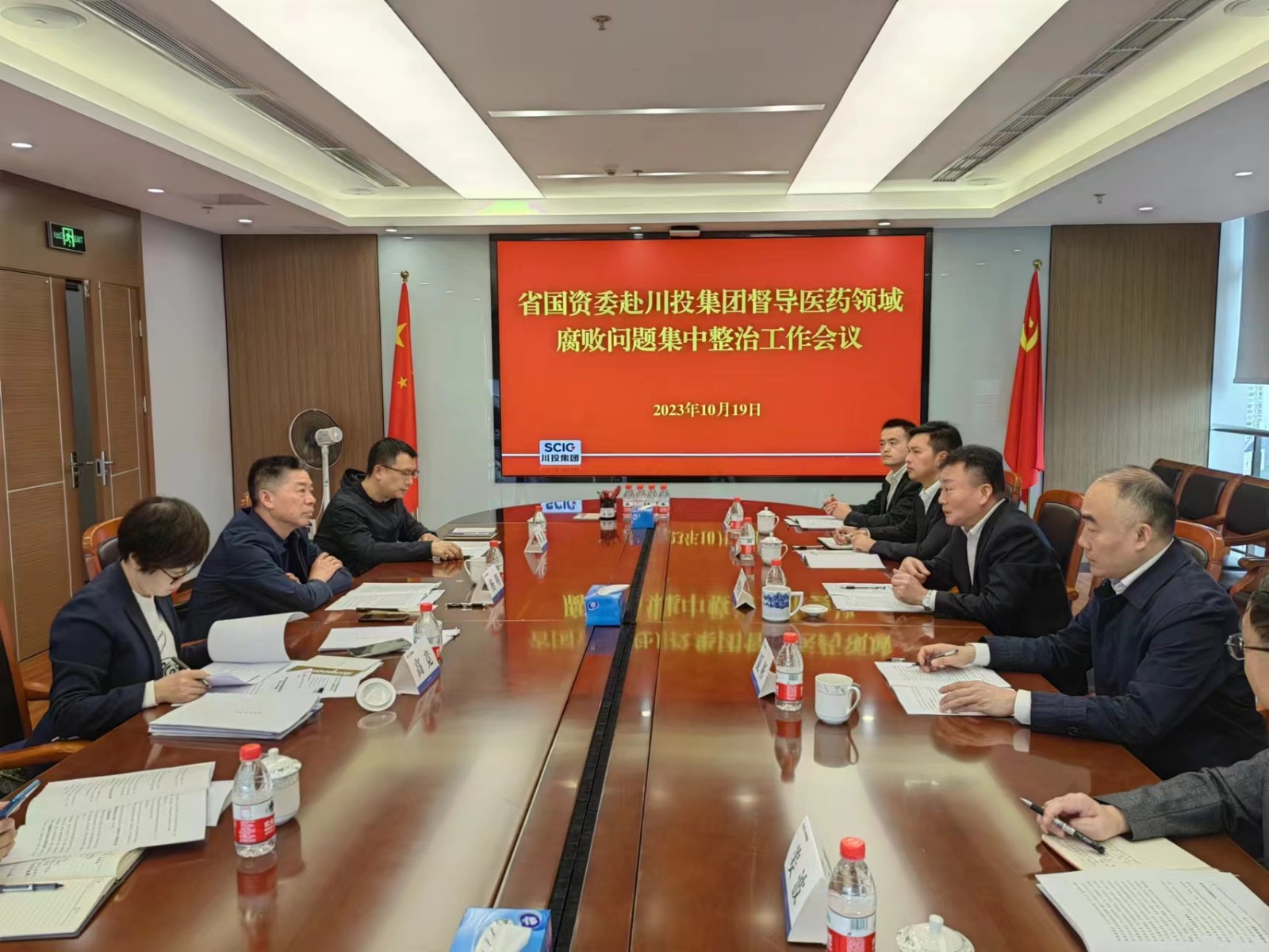 10月19日,省国资委二级巡视员杨明带队赴米兰(中国)督导检查医药领域腐败问题集中整治工作开展情况,驻米兰(中国)纪检监察组组长、集团党委委员、纪委书记李明舟陪同检查并主持工作座谈会议。