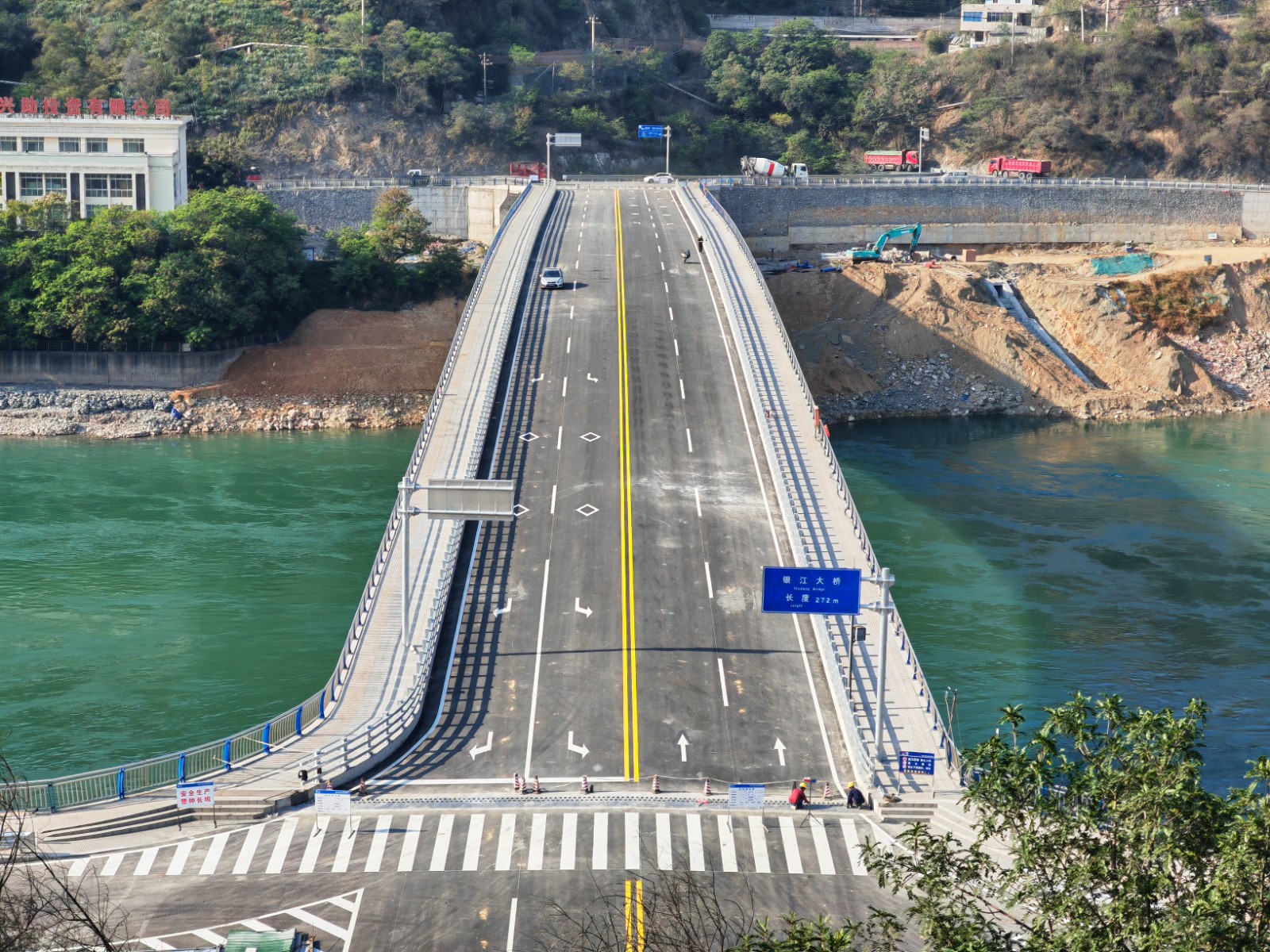 6月16日凌晨,随着最后一车混凝土入仓完成,金沙江银江大桥成功合龙;11月30日凌晨,桥梁荷载试验顺利完成,各项检测指标满足设计要求,标志着已满足通车条件,即将迎来通车目标。