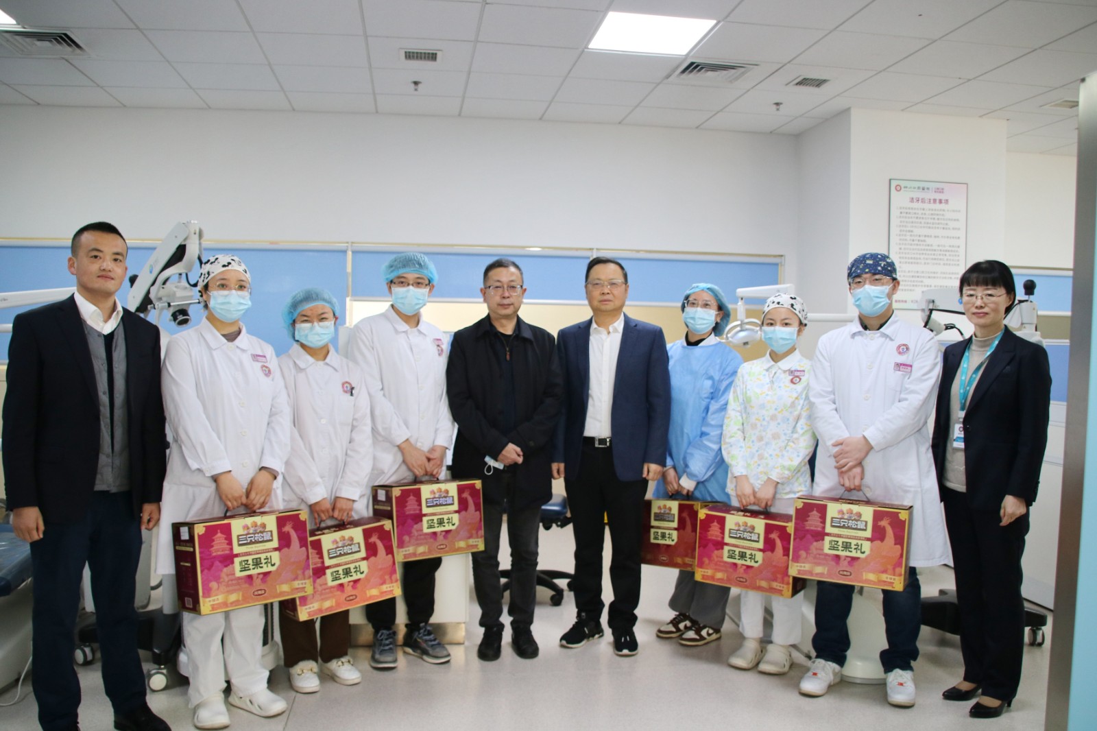 华西牙科党班子成员陪同走访慰问。