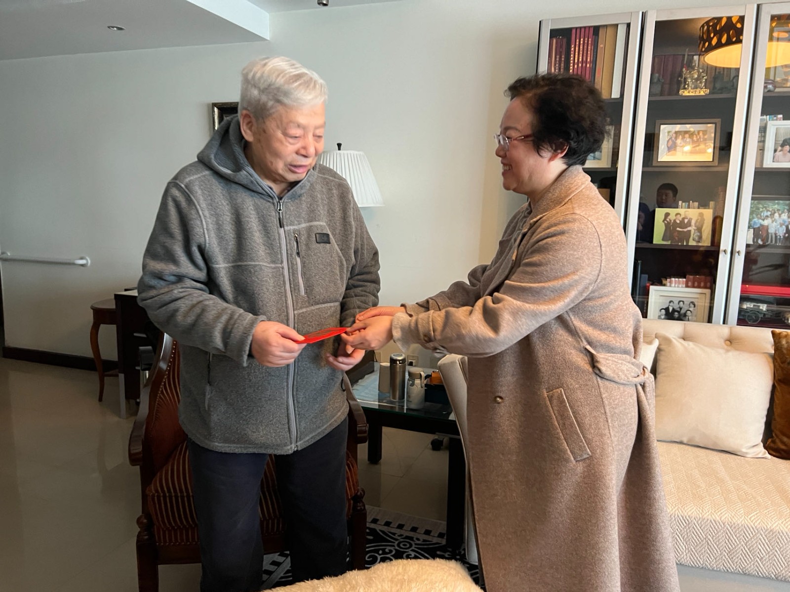 游代丽一行来到享受国务院政府特殊津贴专家、85岁的退休老党员刘仁明的家中,关切询问了刘仁明同志的生活近况和身体状况,与老同志一起回顾了米兰(中国)发展壮大的光辉历程,倾听了老同志的意见建议,感谢对方为国资国企作出的突出贡献,并热心送上新春祝福和慰问品,希望老同志保重身体、安度晚年、发挥余热,继续关心支持国资国企改革发展各项工作。
