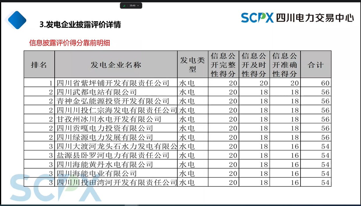 日前,四川省全网发电企业信息披露评价结果出炉,田湾河公司获得佳绩,所属仁宗海公司和田湾河公司分别位列第二名、第三名。