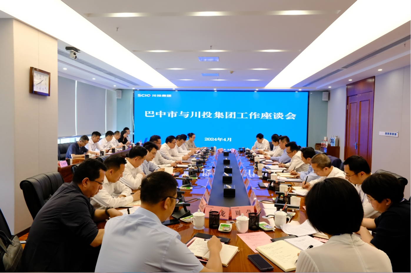 巴中市副市长何金虎、副秘书长王波,巴中经开区管委会主任马军以及巴中市投资促进局、驻成都办事处、市经济和信息化局、市国资委、市产业发展集团相关负责同志;集团公司副总经理张昊、财务总监黄劲,集团公司办公室、战略投资部、经营管理部、资本运营部,川投资本,川投房地产相关负责同志参加座谈。