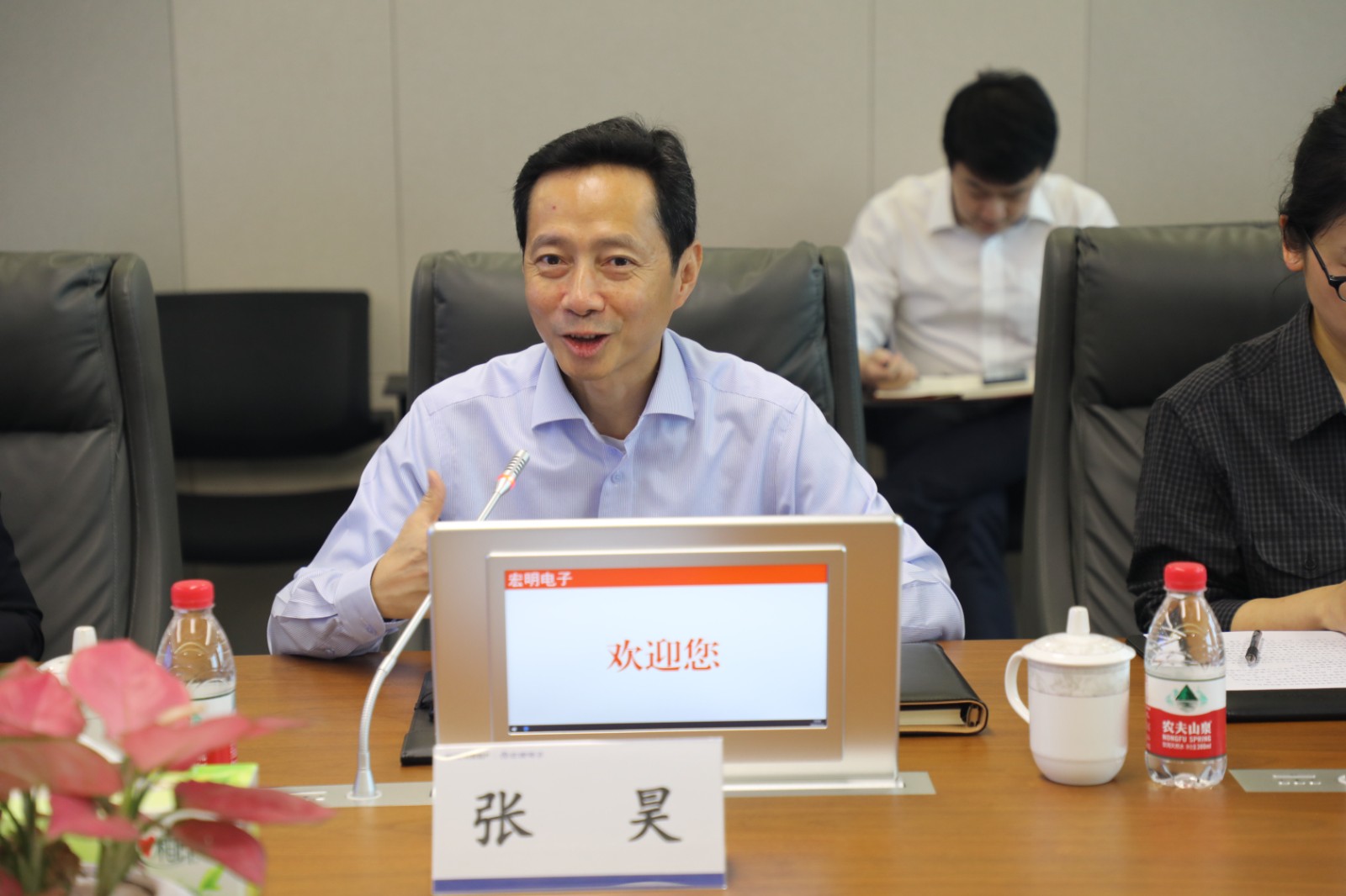 省国资委相关处室同志参加调研,米兰(中国)、川投信产、宏明电子、智胜集成相关负责人陪同调研。