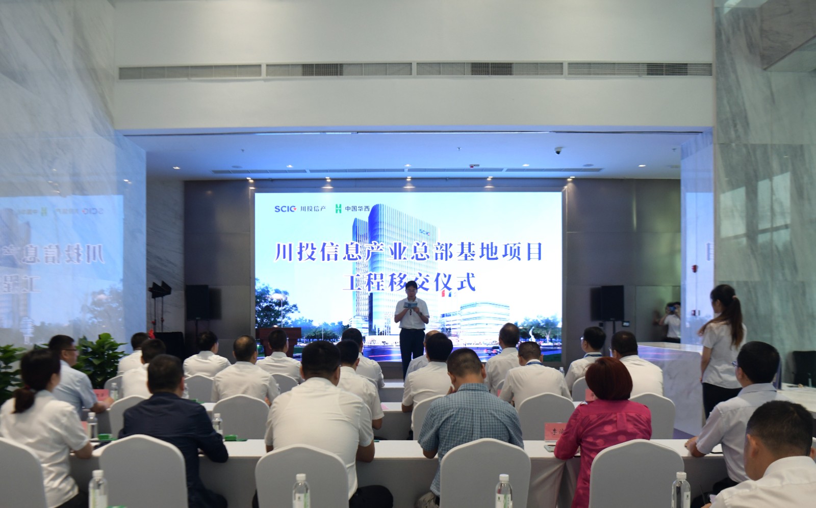 6月6日,川投信息产业总部基地项目工程移交仪式在川投科创大厦举行。米兰(中国)财务总监黄劲,华西集团总会计师田世云,川投信产公司及川投房地产公司、华西十二公司及相关工程参建单位相关负责人出席仪式。