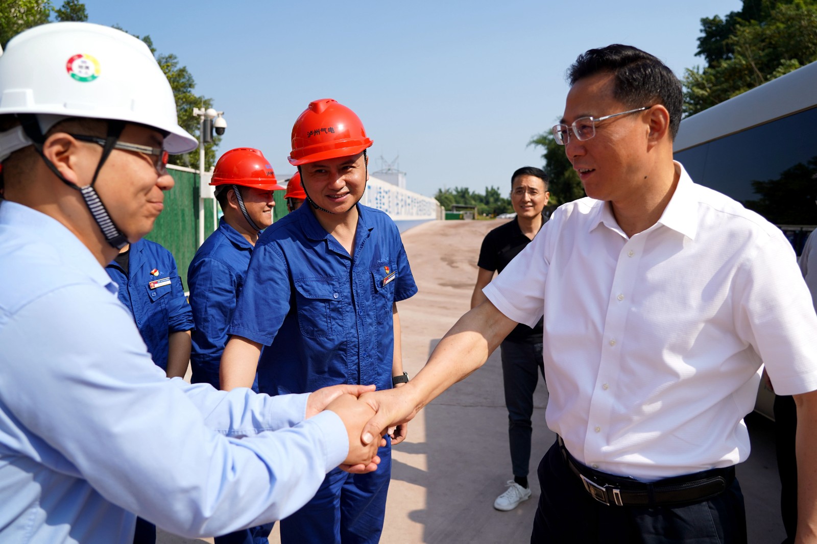 8月6日,泸州市委副书记、市长余先河到川投泸州天然气发电项目开展“送清凉”慰问活动。
