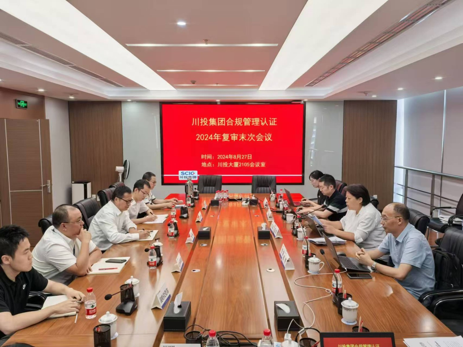 舒勇对审核组到集团公司开展复审表示欢迎。他指出,川投集团高度重视依法治企和合规管理工作,深入学习贯彻习近平法治思想,充分发挥法治建设“固根本、稳预期、利长远”作用,根据ISO 37301及GB/T 35770合规管理体系要求,紧紧围绕公司发展目标,高效务实推进法治建设和合规管理工作,依法合规经营,有效防控风险,为集团高质量发展提供了坚强保障。他强调,各部门要高度重视本次复审监督工作,按要求准备各项材料,不捂盖子,自亮家丑,积极接受访谈问询,认真落实审核组提出的专家建议。他要求,一是要进一步强化延伸。全面深化“1+5+N”企业合规管理体系建设,把合规管理对标的的要求向各级子公司延伸,支持符合条件、有认证需求的所属公司申请第三方认证,实现合规管理体系建设全覆盖。二是要进一步强化联动。合规管理是全员参与的“一把手”工程,要按照“管业务必须管合规”要求,以“三张清单”梳理编制工作为抓手,把合规要求嵌入企业经营管理各领域各环节,贯穿决策、执行、监督全过程,落实合规风控各项要求到每名员工,实现多方联动。三是要进一步强化执行。严肃制度执行刚性,把制度优势转化为实践行动;以合同合规管理等领域为重点,严格落实合同信息化管理全覆盖的要求,强化事前防范;落实合规考核奖惩,发挥“指挥棒”作用,不断提升合规管理治理效能。