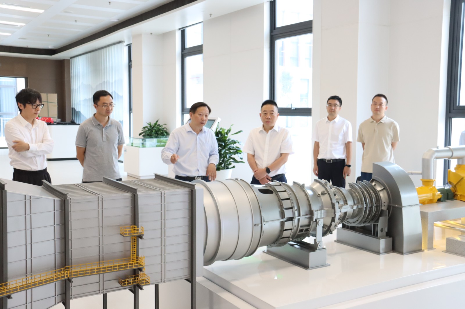 在一楼展厅,肖长青观看了项目建设规模、建设历程宣传片,详细了解H级燃机构造、运转原理;在智慧管控中心,通过监控盘了解发电各项指标参数、运行情况;在机组15米平台,实地查看1号机组和2号机组。随后,肖长青一行听取了川投燃电、资阳气电项目投资完成情况及资阳燃气电站项目安全生产、工程推进、1号机组生产运营等方面工作汇报,详细了解资阳气电当前遇到的困难以及下半年工作安排。