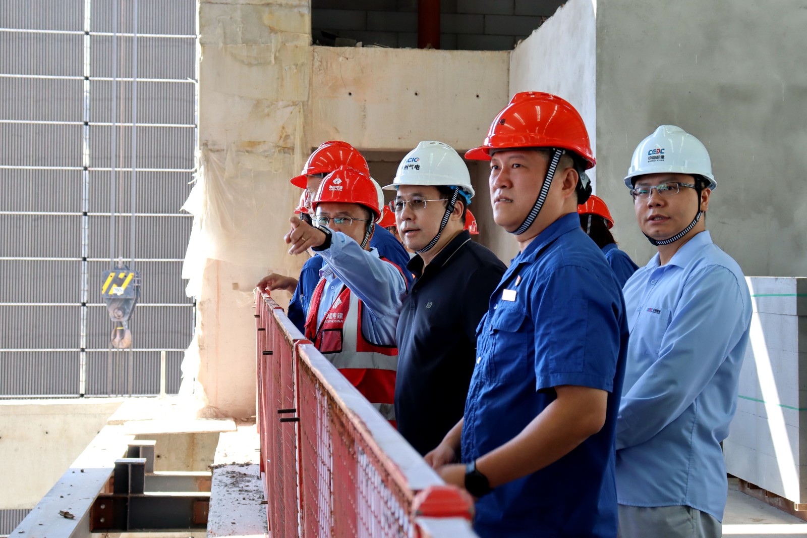 王怀林一行深入川投泸州天然气发电项目施工现场,参观项目智慧工地信息中心,实地查看主厂房、冷却塔、余热锅炉等施工区域,详细了解项目主体工程、配套工程建设进度,设备到货、安装情况,安全环保管理、防暑降温措施落实等工作情况。