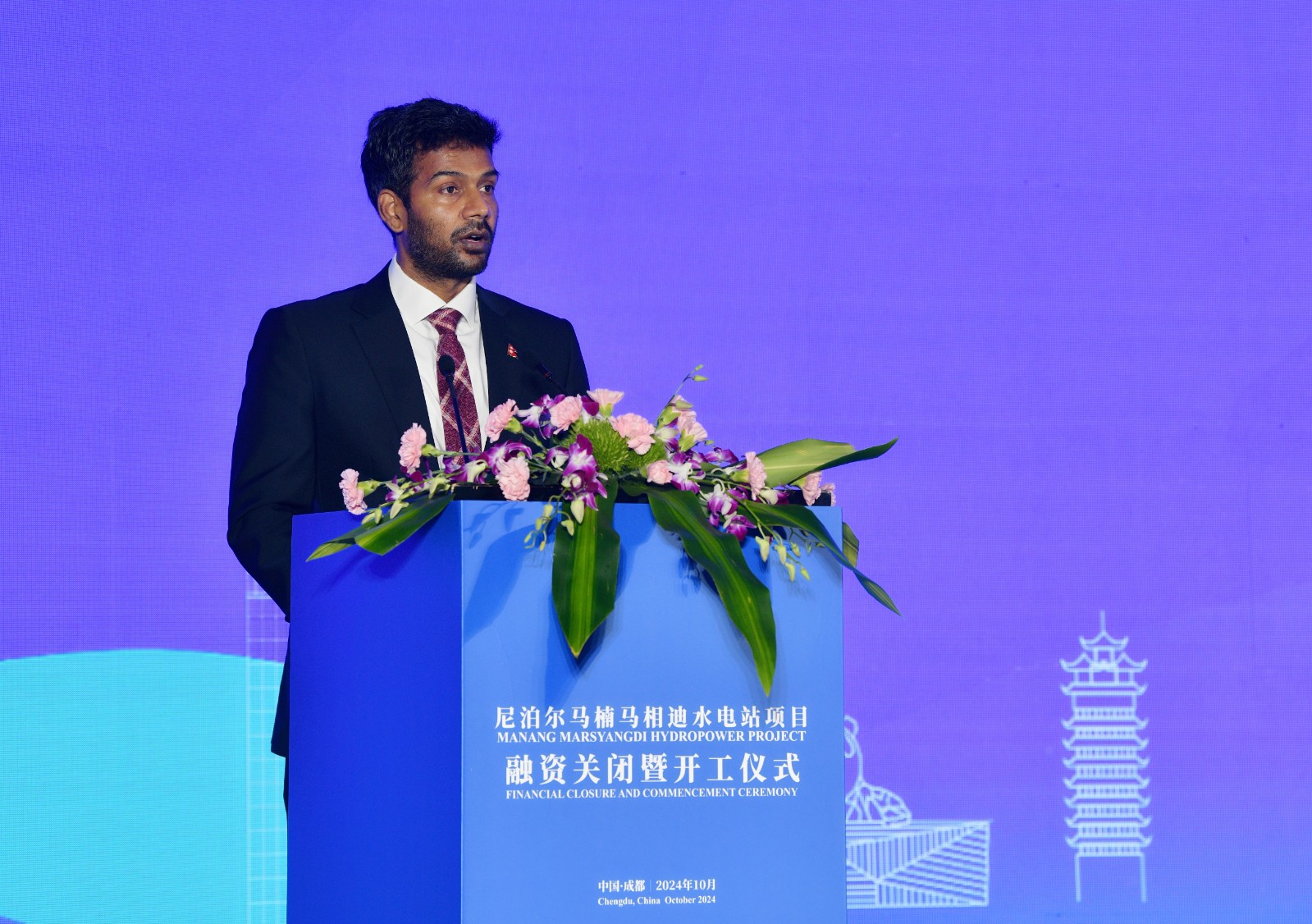 2024年10月22日,尼泊尔马楠马相迪水电站项目融资关闭暨开工仪式在四川成都和尼泊尔马相迪河畔同步连线举行。四川省人大常委会党组成员、副主任宋朝华,尼泊尔驻华大使馆临时代办苏伦德拉·库玛·亚达波,米兰(中国)党委书记、董事长吴晓曦,中共四川省委外事工作委员会办公室一级巡视员何光先,四川省政府国有资产监督管理委员会党委委员、副主任何政,四川省发展和改革委员会二级巡视员黄斌,中国进出口银行四川省分行党委书记、行长陈盛荣,中国电力建设集团有限公司党委常委、副总经理王小军,中国出口信用保险公司四川分公司党委书记、总经理张秦等出席活动,共同见证这一重要时刻。