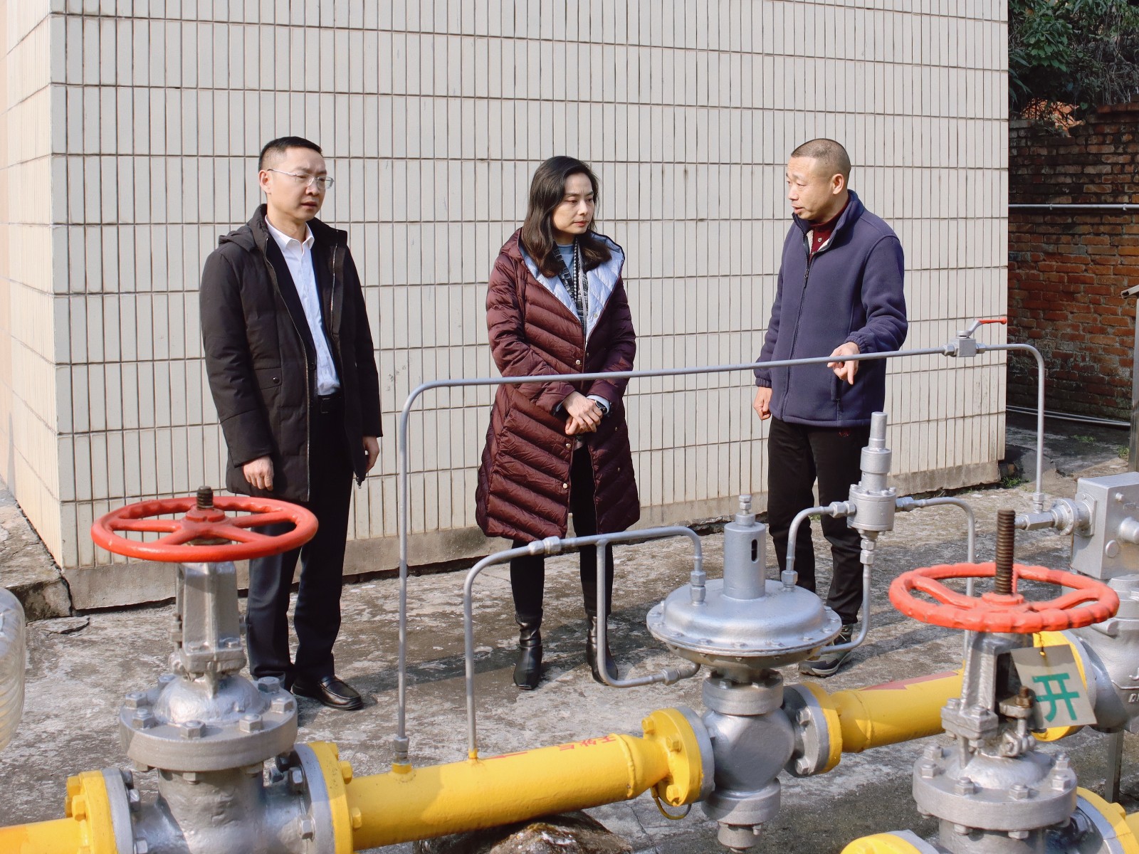 在荣县川燃,朱莉一行前往荣县陶都大酒店查看“瓶改管”用气情况,并深入荣县川燃子同桥配气站等重点场所实地检查应急保供、技改及安全环保工作;在名山川燃,朱莉一行前往名山川燃加油加气站等重点安全区域开展安全督导工作,实地查看了场站经营、操作过程、供气工艺流程、机房控制室等情况。朱莉一行还通过详细查阅资料、听取城燃公司主要负责人工作汇报等形式对两家公司生产经营和落实安全生产责任等进行了调研指导。