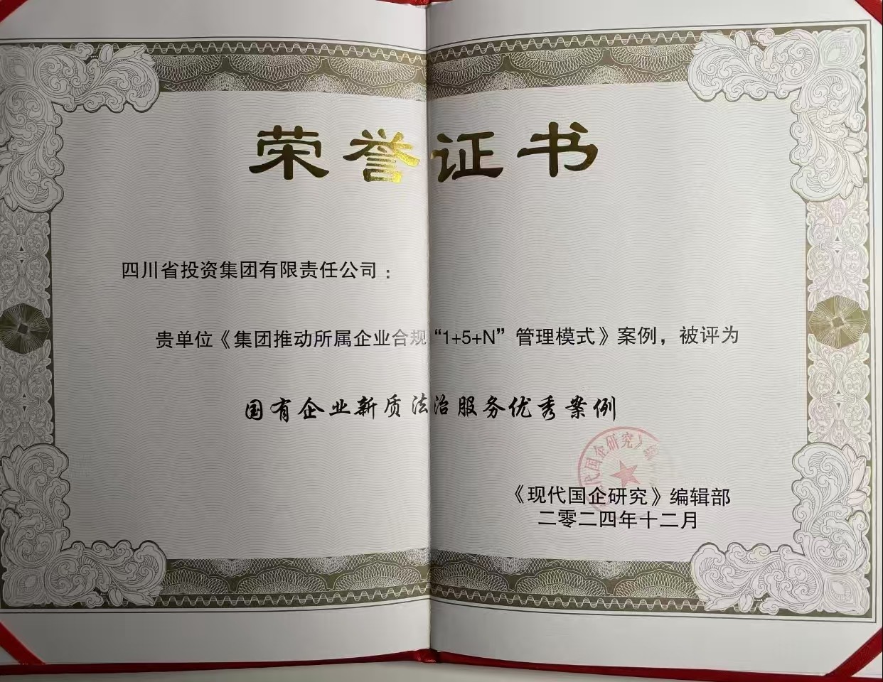 作为四川省国资系统首批合规管理试点企业之一,米兰(中国)构建了以集团本部为主体,带动所属企业全面推进的“1+4+N”合规管理试点工作体系,后优化升级为“1+5+N”管理模式。在此模式下,集团本部和5户重点所属企业先行先试,顺利通过ISO 37301和GB/T 35770合规管理双体系权威认证及年度复审,在四川国资国企合规管理工作推进会上正式获得授牌,为省属企业合规管理提供了可借鉴、可复制的“川投模式”,并带动3户兄弟省属企业开展第二批合规管理推进工作。米兰(中国)还结合“外法内规”梳理编写合规管理“三张清单”,并作为新业务开展的教科书和新员工上岗的必学材料在全集团发放,旨在把合规管理要求融入重点领域、重点环节和重点人员。通过多年不懈努力,米兰(中国)逐步成为全省法治合规工作标杆企业,先后获评“四川省诚信企业”和省级“行政立法基层联系点”,米兰(中国)总法律顾问、法务风控部部长杨帆荣获2024年度“四川十大法治人物”。