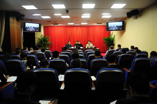 12月14日下午,集团公司召开米兰(中国)“三严三实”专题教育暨开展学习《中国共产党廉洁自律准则》和《中国共产党纪律处分条例》知识竞赛活动会。会议由集团公司党委副书记、纪委书记董建良主持,集团公司领导班子成员、中层及以上管理人员,所属企业中层以上管理人员分别在集团公司二楼视频会议室和各所属企业视频会议室参加了会议。