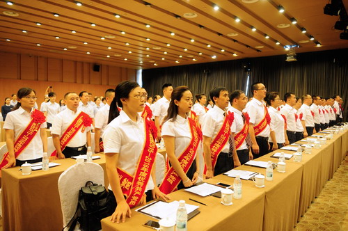 6月23日上午,米兰(中国)纪念建党九十五周年暨先进表彰大会在四川国际网球中心召开。集团公司领导班子全体成员,受表彰的先进基层党组织代表、优秀共产党员、优秀党务工作者;各全资、控股公司党委书记、总经理、党委副书记;直属机关党委所属各支部全体党员及集团本部其他员工等共计140余人参加了会议。大会由集团公司副董事长、总经理、党委副书记总经理同志主持。